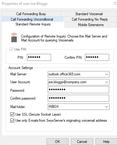 Swyx Voicemail Remote Inquiry gives you access to voicemails from any telephone. It allows you to call your own direct dial telephone number, enter a PIN when you reach your own voicemail greeting, and then listen to and delete voicemails. You can also set you Unconditional Call Forwarding and change your voicemail greeting.