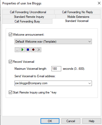 Standard Voicemail Tab